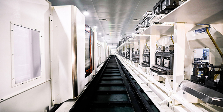 • FMS柔性生產線,由6臺機床組成:柔性生產線是將多臺機床聯結起來,配以自動運送裝置組成的生產線